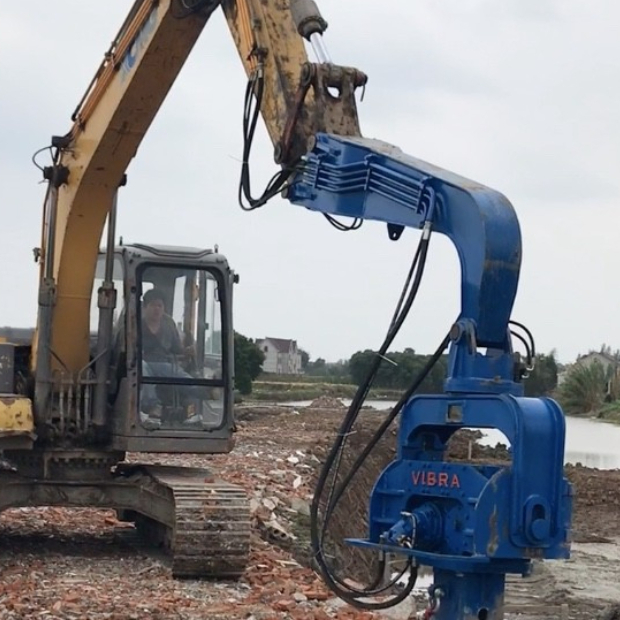 - Mạnh mẽ và đa chức năng: Được áp dụng cho các loại cọc ván thép, cọc vỏ thép, cọc đúc tại chỗ bằng máy rung, đầm bề mặt, đầm sâu và đóng cọc thành mỏng đúc tại chỗ;cũng được sử dụng làm cọc PHC, cọc ván thép và vỏ thép.