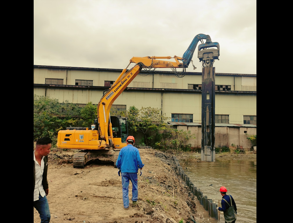 Máy ép cọc VIBRA có thể được sử dụng cho nhiều mục đích đóng cọc bao gồm cả đóng cọc ván nhựa.Nó có nhiều loại công trình đóng cọc bao gồm kè nguồn nước, nền nhà, mạng lưới thành phố, cầu và các lĩnh vực xây dựng khác.FV-250 một trong những loại máy đóng cọc phổ biến trong ngành công nghiệp với khả năng đóng cọc 10m phù hợp với các loại máy xúc loại trung bình từ 20 đến 30 tấn.Dễ vận hành và đáng tin cậy, đủ khả năng đóng các tấm xi măng, thép tấm, thép ống, thép H, gỗ, v.v. Máy đóng cọc VIBRA FV250 lắp với máy xúc Lonking để đóng cọc ván nhựa 9 mét gần kênh, khách hàng hài lòng với FV250 như nó đáp ứng các yêu cầu của mình đồng thời đảm bảo nhiều lợi nhuận hơn!